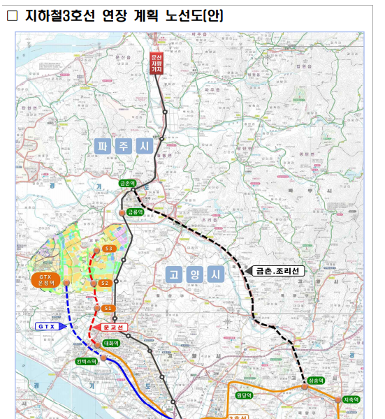 GTX 파주운정 연장선 및 3호선 금촌-조리선 예정 등